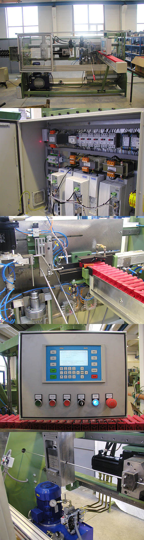 Popis: Zařízení k ovládání stroje na výrobu háků pro malířské válečky. |